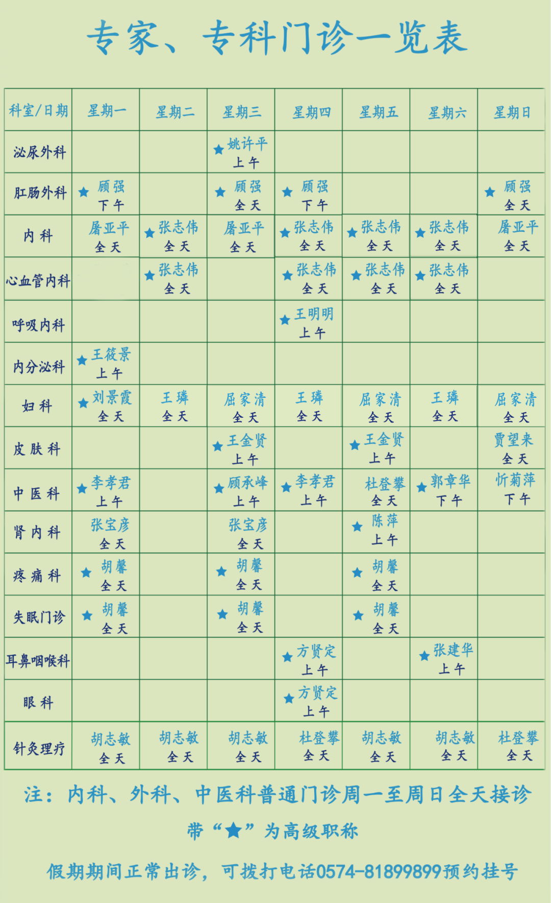 宁波鄞州慧康医院12月份专家、专科门诊一览暨专家简介