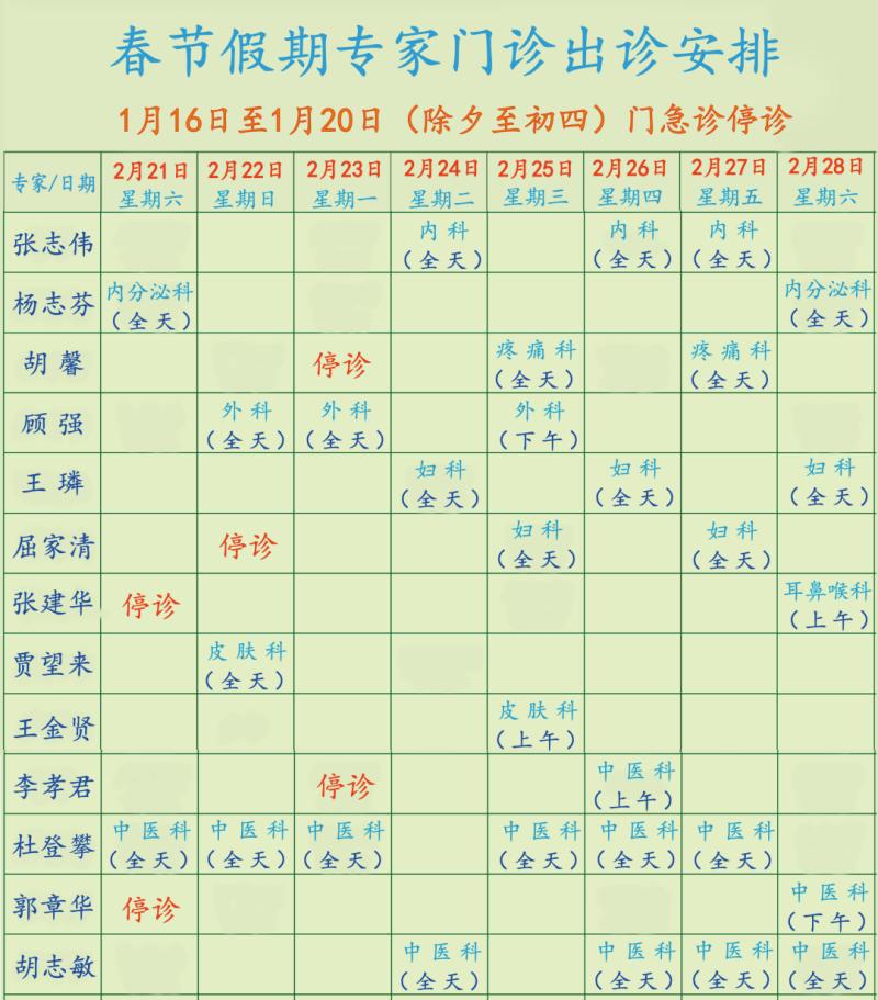其中2月21日起(初五)中医科、内分泌科专家门诊恢复正常;