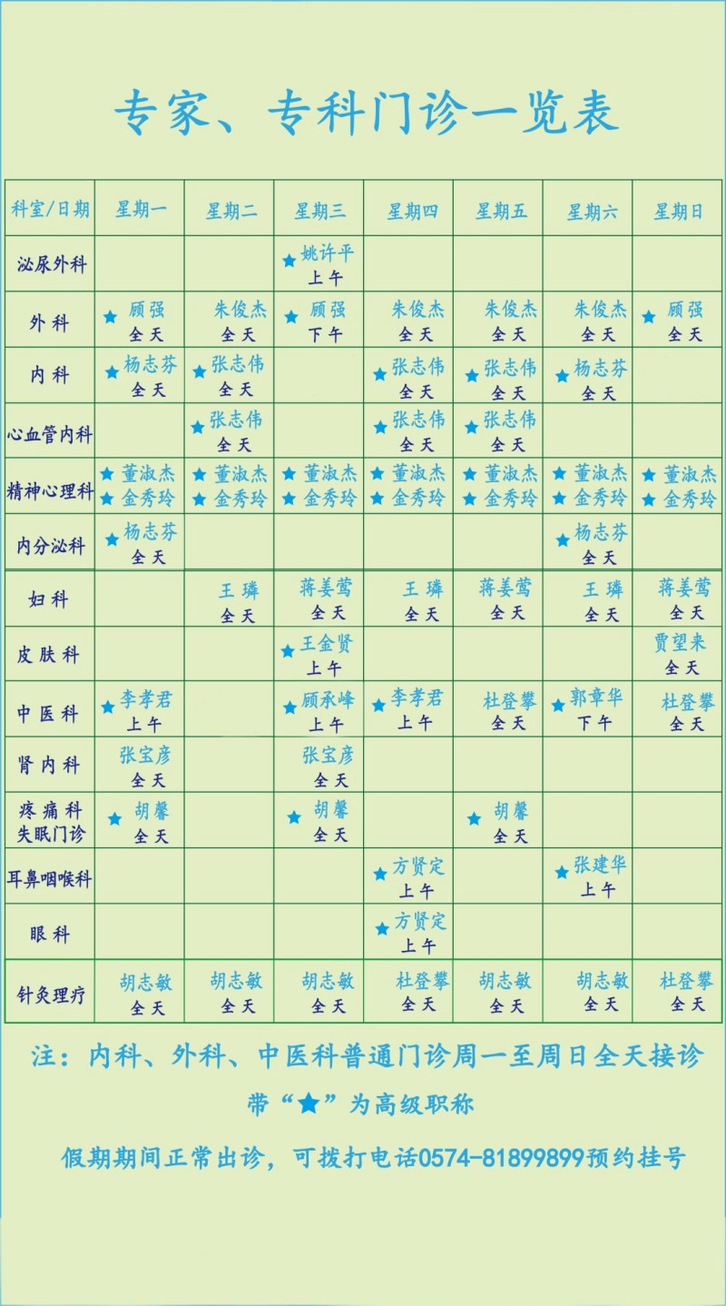 宁波鄞州慧康医院3月份专家、专科门诊一览暨专家简介